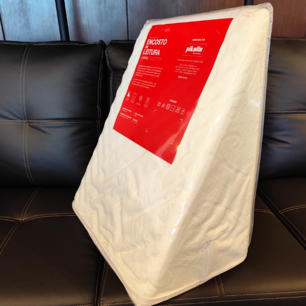 Es una almohada con forma de cuña, ideal para leer o ver televisión cómodamente en la cama o el sofá.