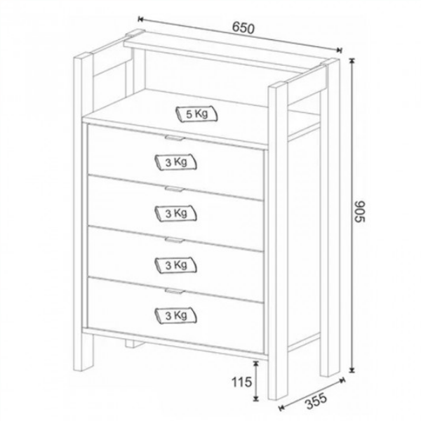 Estructura lateral reforzada confeccionada en placa de MDP de 25 mm