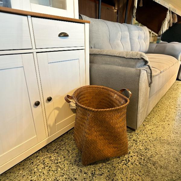 Canasto De Mimbre Y Manijas De Cuero