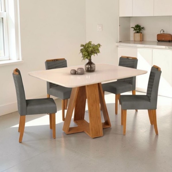 Juego de Comedor Celeste Beige y Gris