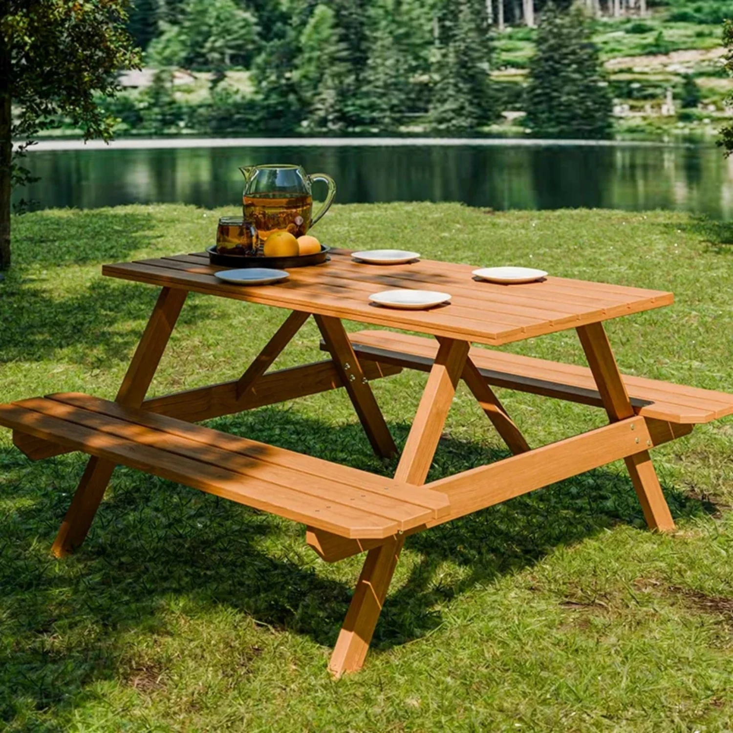 Mesa + 2 bancos de Eucalipto – Pic-Nic