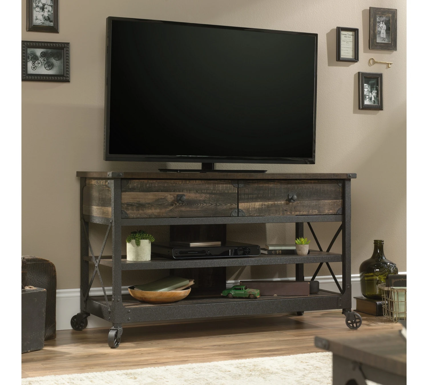 Rack Para TV Con Estantes Linea Sauder Steel River