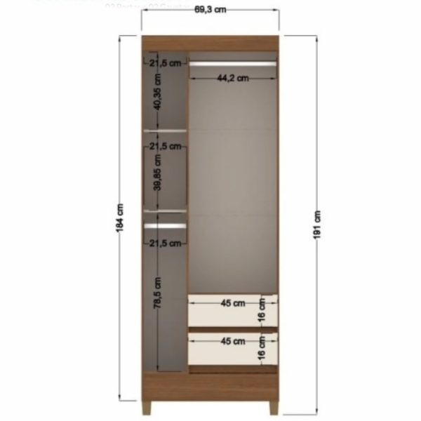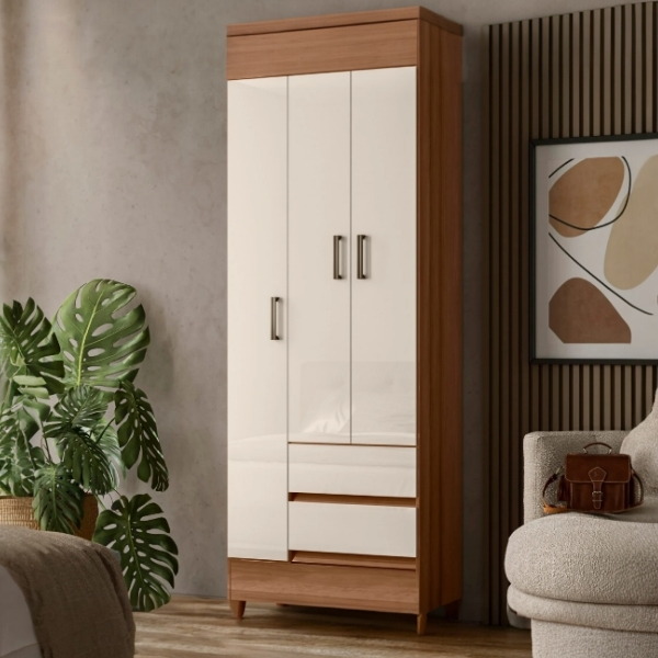 Ropero 3 puertas 2 cajones – Terminación Jequitibá Claro – Linea FIT