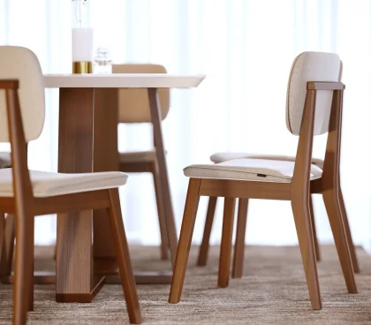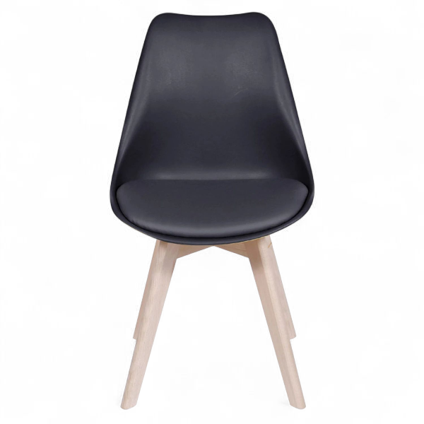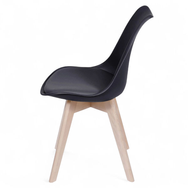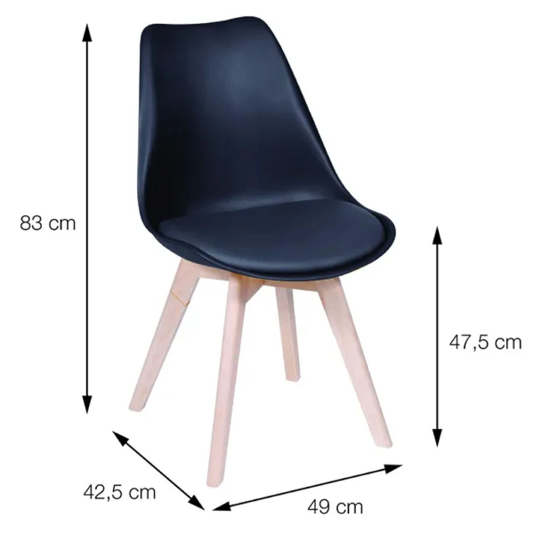 Material: Asiento de polipropileno con cojín fijo de espuma inyectada recubierta de PU con base de madera.